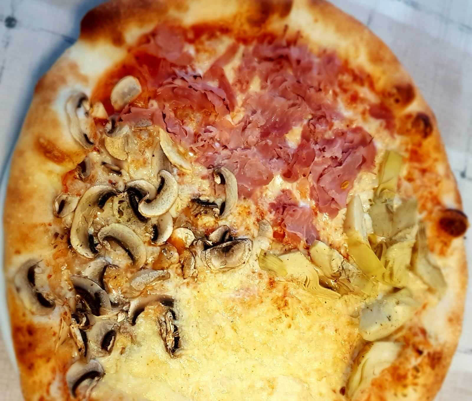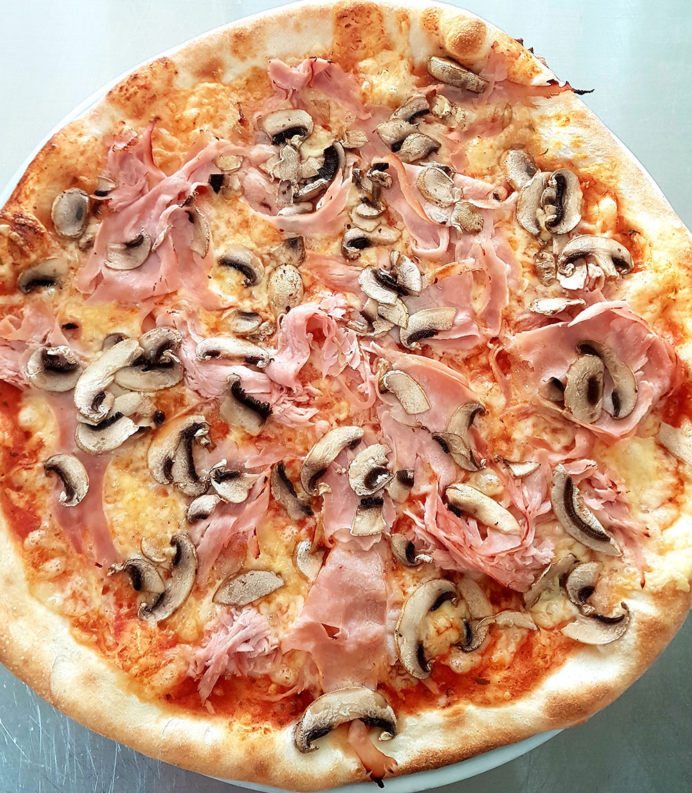 Tomaten, Käse, frische Champignons, Schinken, Artischocken AG